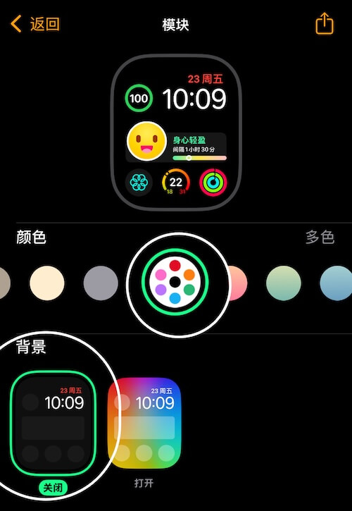 表盘颜色异常 有两种方法解决。 方法一:在手机上设置 打开手机上的“Watch”应用 点击正在使用的表盘,设置背景为“关闭”,颜色为“多色” 方法二:在手表上设置 长按当前表盘,进入表盘编辑界面,点击“编辑” 左右滑动到“背景”选项,滑动表冠,调整为“关闭” 左右滑动到“颜色”选项,滑动表冠,调整为“多色”